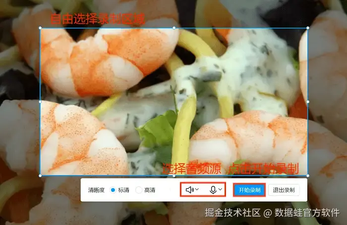 数据 蛙录屏软件的操作步骤如下: