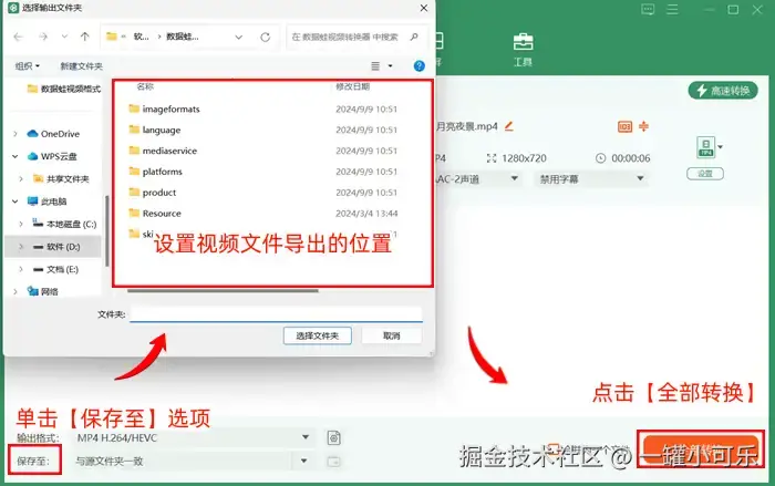 步骤3:在视频格式转换界面中,点击下方的【保存至】,设置视频文件导出的位置,然后点击【全部转换】即可。