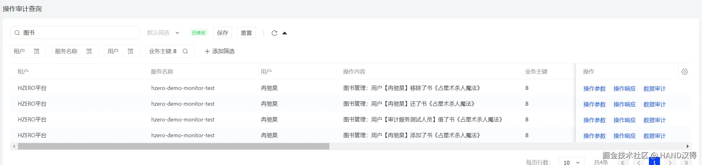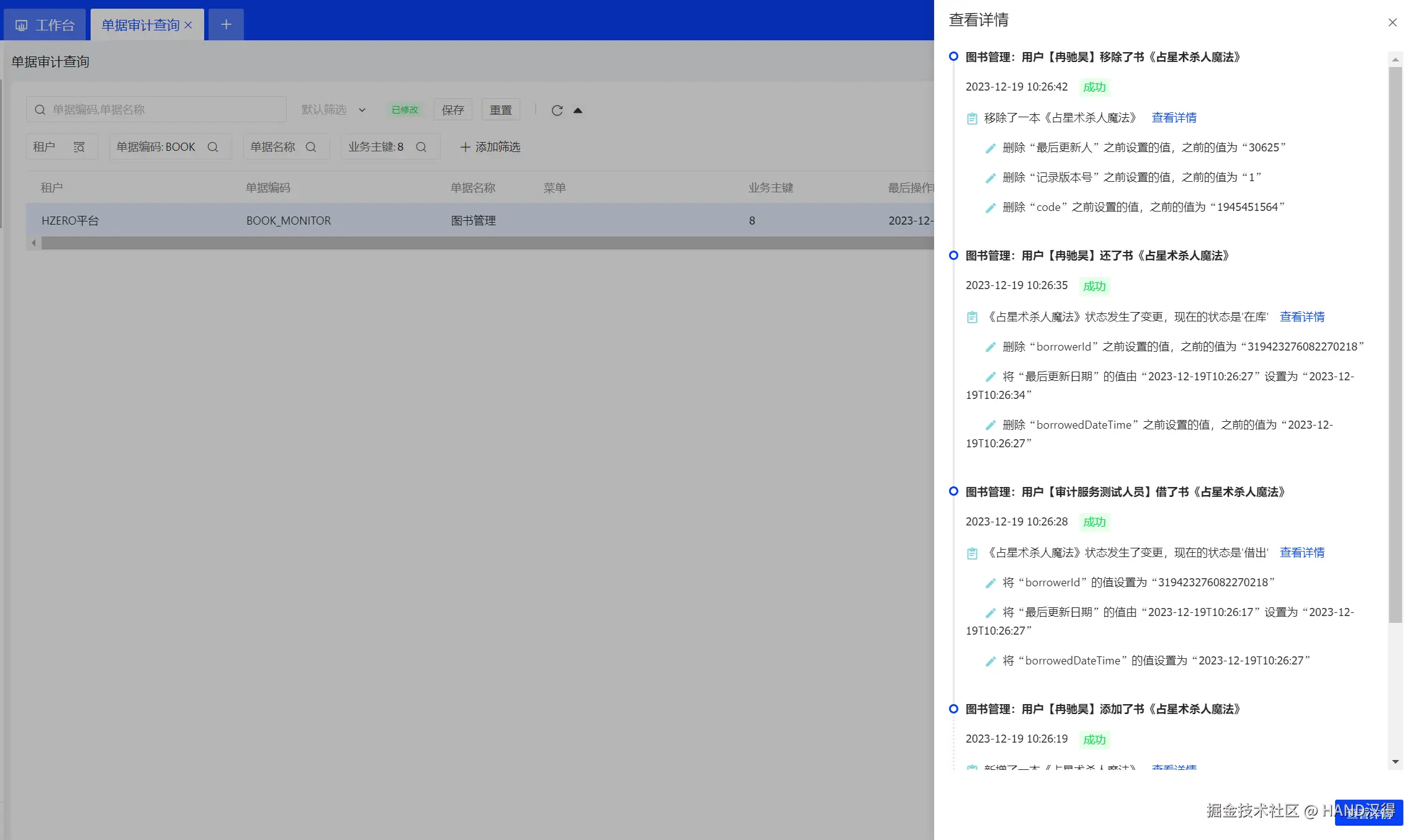 对图书进行操作后,可以在界面上查看审计结果。