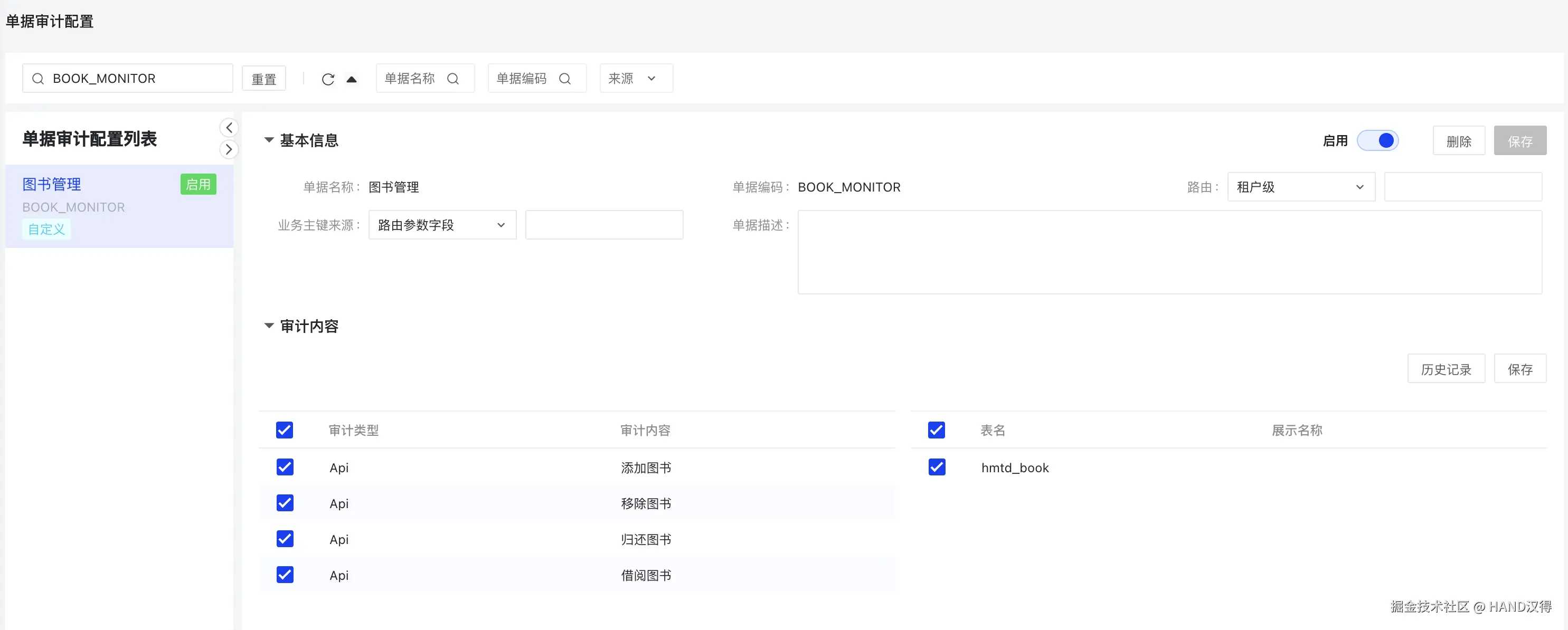 打开菜单审计管理->单据审计->单据审计配置,创建单据审计。