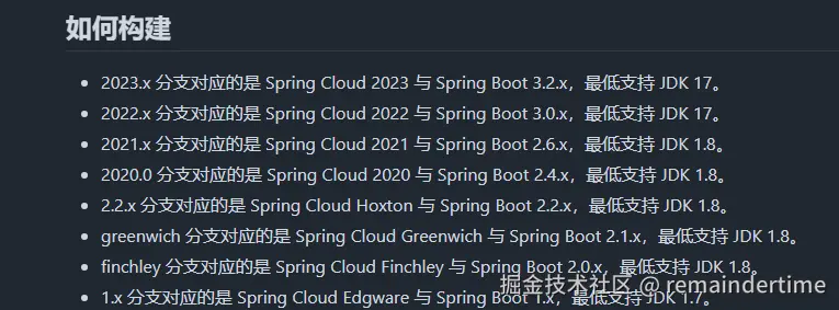 我们可以直接访问spring cloud alibaba的github地址,上面也有简约的版本说明:spring-cloud-alibaba/README-zh.md at 2023.x · alibaba/spring-cloud-alibaba