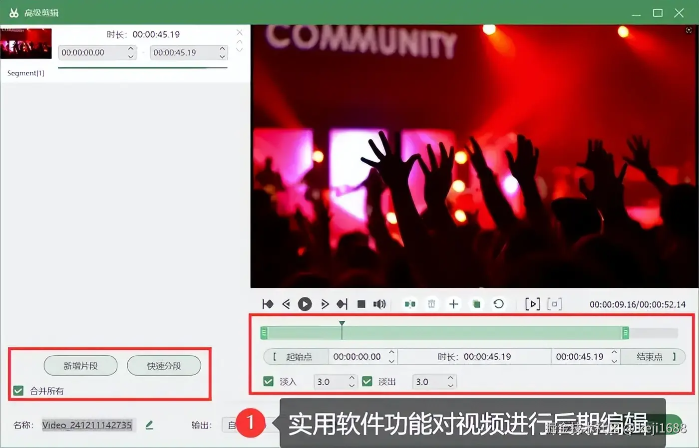 步骤3:录制完成后,使用内置编辑器对视频进行后期处理,如分段、剪辑视频等还能更改视频的格式。