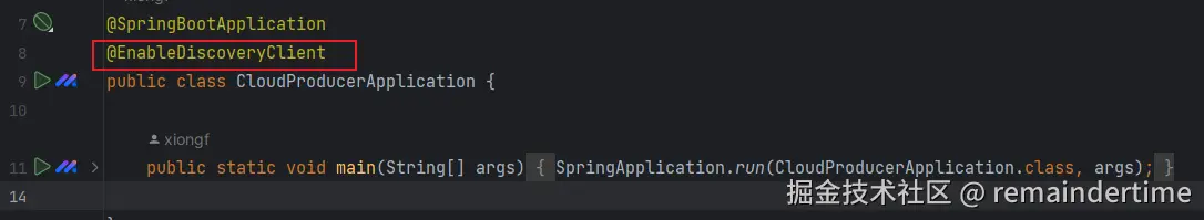 子模块所有启动类上加上注解 @EnableDiscoveryClient 作用是启用服务注册与发现功能