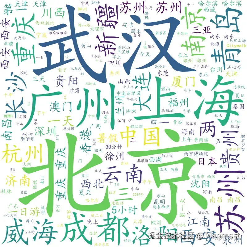 词云图是一种数据可视化工具,通常用于展示文字数据的频率分布,强调词语的重要性或热门程度。它呈现为一张图,其中包含了各种词语,这些词语的大小或颜色通常取决于它们在文本中的出现频率,较频繁出现的词语通常较大或较暗,从而使观众更容易识别出关键词。