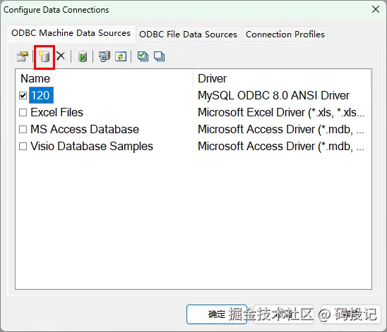 9、勾选刚创建成功的Date Source Name,点击确定