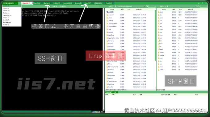 首先要下载IIS7服务器管理工具,在下载完毕后解压此文件,然后打开IIS7服务器管理.exe,接下来轻点”添加“,在弹出的添加服务器对话框里,精准填入目标服务器的IP地址、端口号、用户名及密码,随后按照远程机器系统的情况选择对应的板块。若要连接SSH服务器,保存设置后,双击对应的服务器条目,就能迅速建立连接,随即呈现出熟悉的SSH界面,在此可流畅执行各类命令行操作,如图所示: