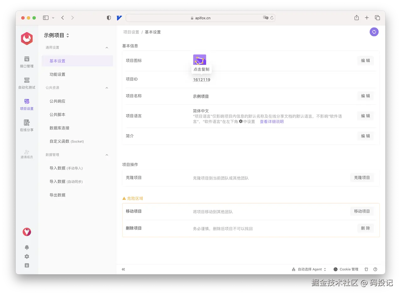 打开项目设置——基本设置,复制项目 ID。