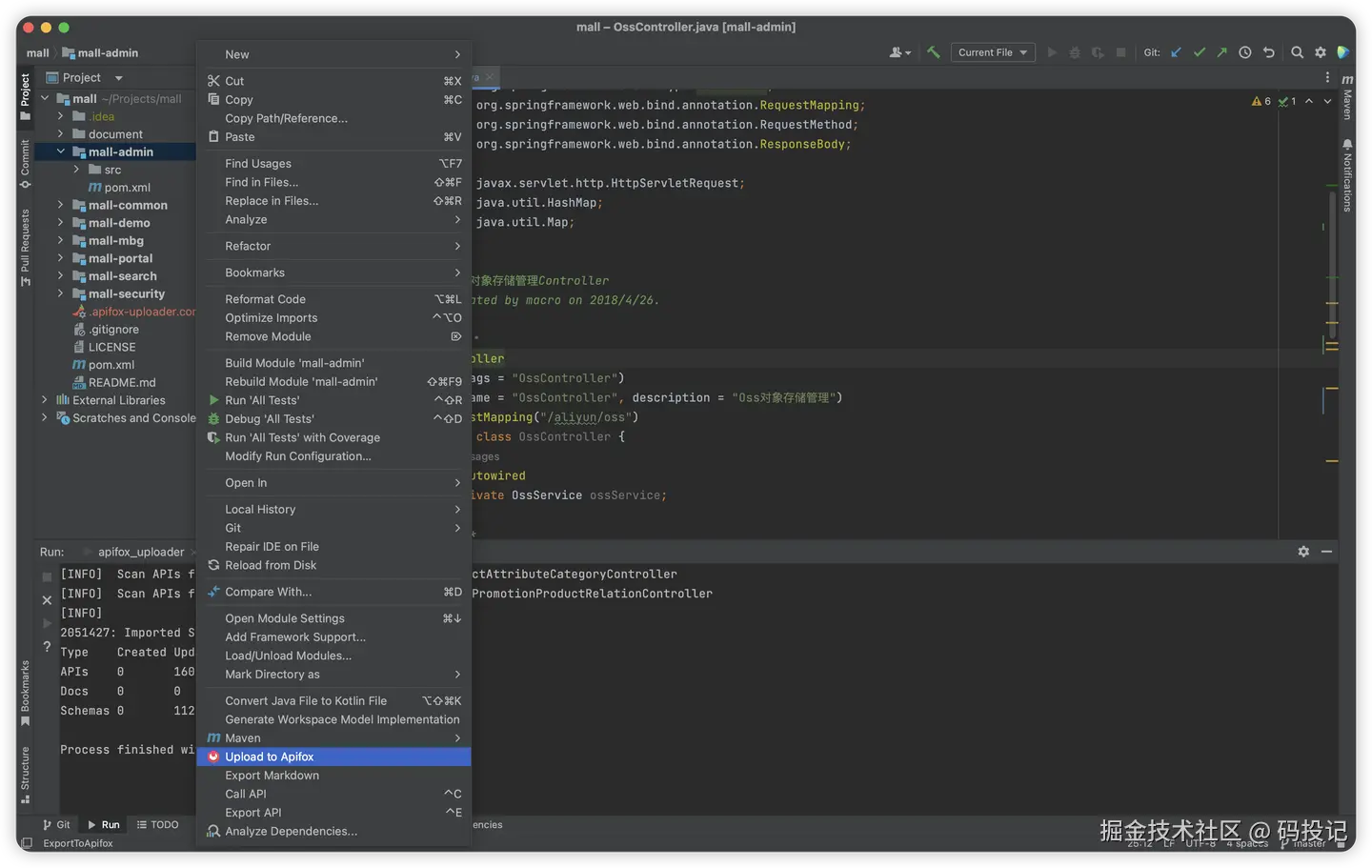 - 在模块目录上的右键菜单中选择 Upload to Apifox