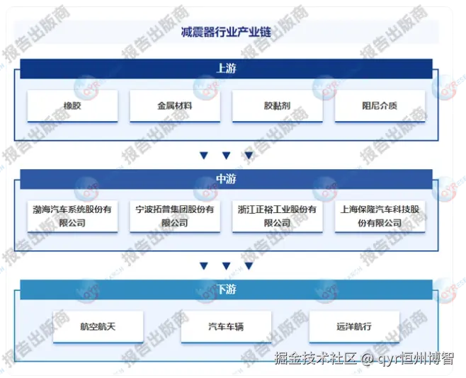减震器行业的供应链主要包括上游原材料供应商、中游减震器制造商和下游应用领域。上游产业包括橡胶、塑料、钢铁、铝合金等原材料的供应商;中游产业是减震器的制造企业;下游产业则包括汽车整车制造商、汽车零部件供应商以及汽车维修市场等。