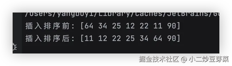 - 接下来,我们使用一个内部循环for j := i - 1; j >= 0 && arr[j] > key; j--来遍历当前元素之前的已排序部分,从当前元素的前一个元素开始,直到第一个元素。