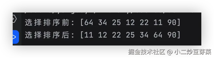 - 在外部循环中,我们初始化一个变量minIndex,它将用于存储当前未排序部分的最小元素的索引。我们将其初始化为当前外部循环的索引i。