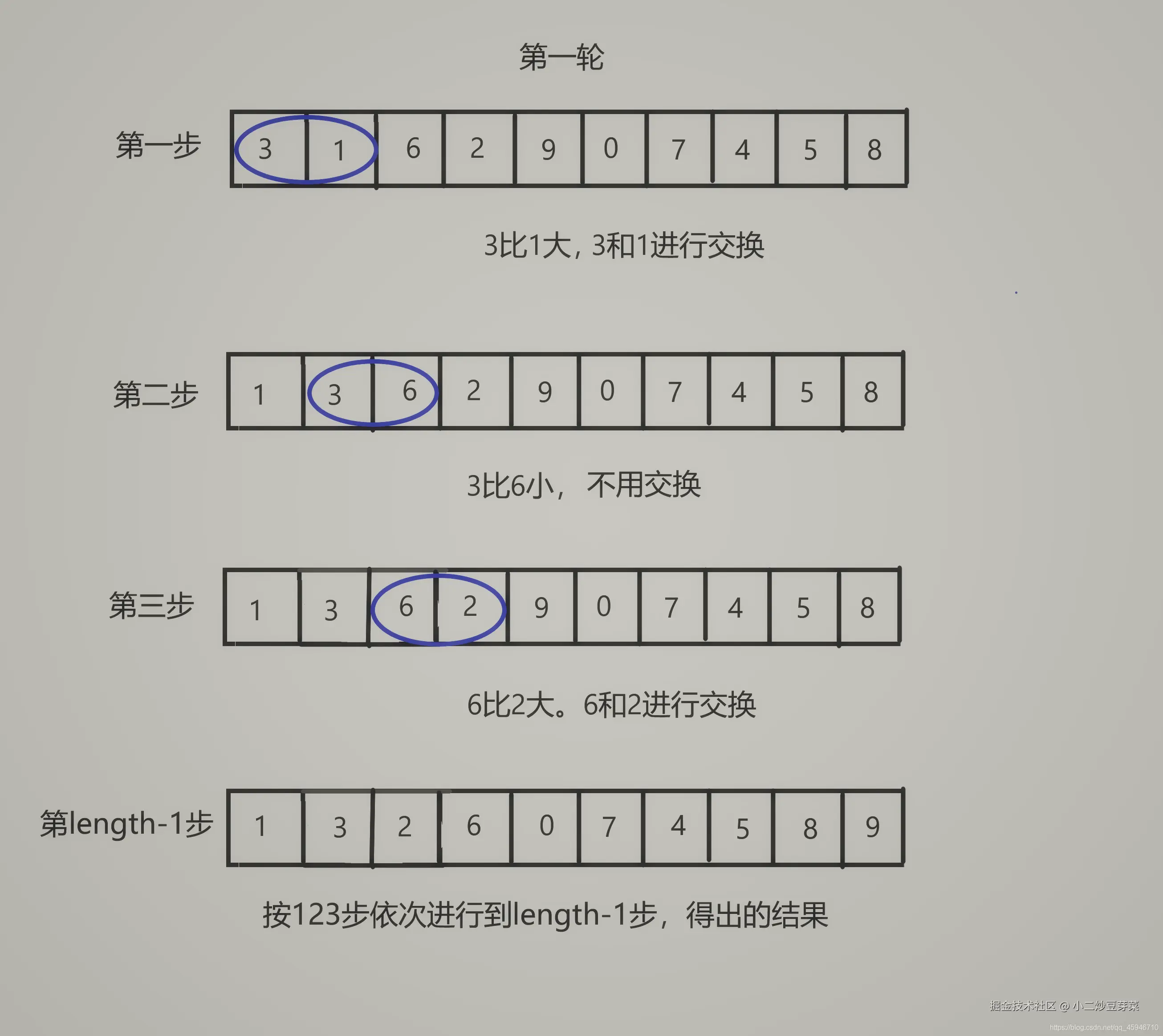 - 内部循环结束后,最大的元素将被移动到数组的末尾。