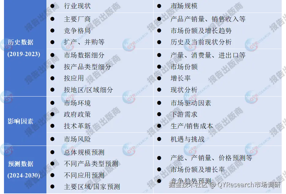 (注:本文数据来源于QYResearc(恒州博智)的最新调研统计与预测,仅供参考) 报告全面分析涵盖了从行业背景、发展历史到现状及趋势的多个方面。报告首先明确了统计范围、产品细分及主要的下游市场,为读者提供了市场的基本框架通过深入的市场研究,为企业决策者提供详实、准确的市场数据和信息,能帮助企业或个人做出更加明智、科学的经营决策。这有助于企业及时抓住市场机遇,同时规避或减轻潜在的市场风险。