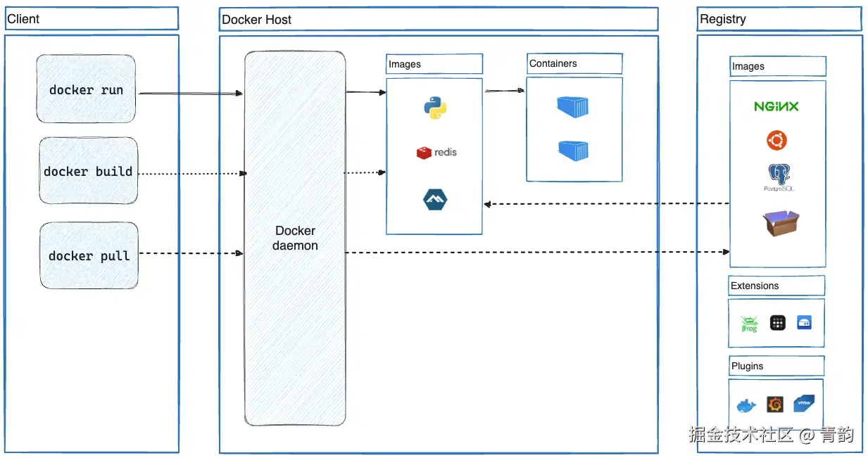 Registry是第三方镜像仓库,存储了大量的别人的镜像,可以拉取过来使用。