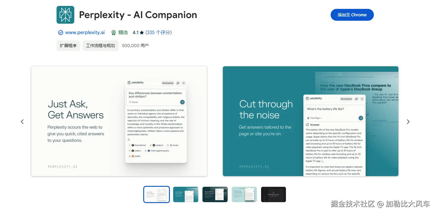Perplexity 的 Chrome 扩展让你无需切换页面,就能快速调用 AI 搜索或其他功能。这对于需要在浏览网页时快速获取补充信息的用户来说,是提升效率的绝佳工具。