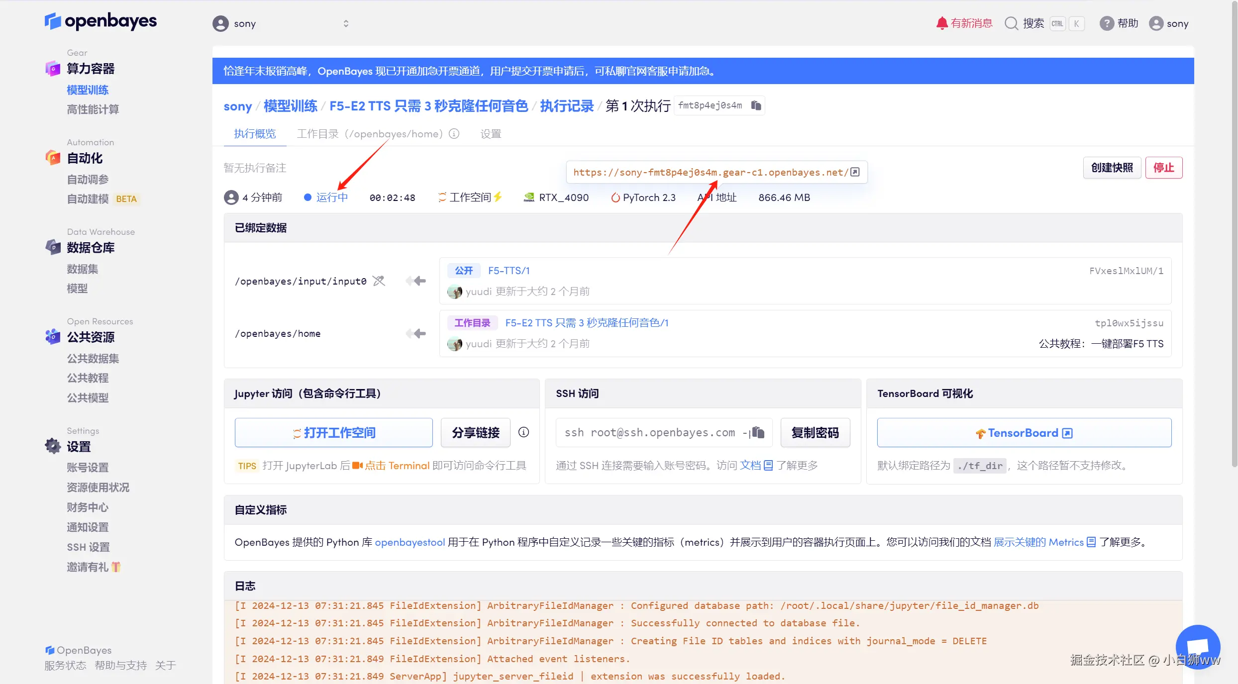 使用云平台:OpenBayes