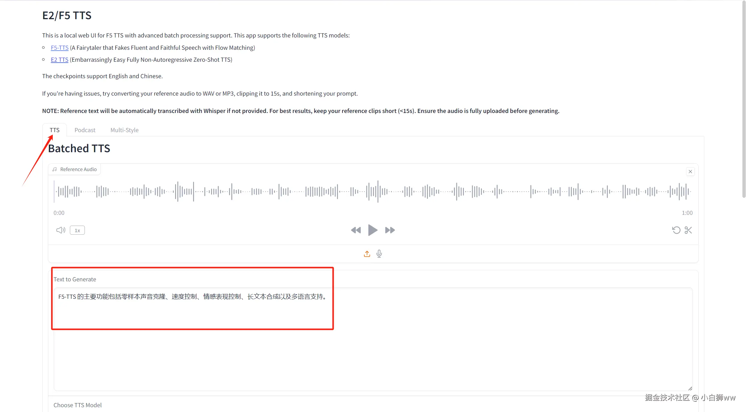 - Reference Text:参考文本,留空以自动转录参考音频。如果您输入文本,它将覆盖自动转录。