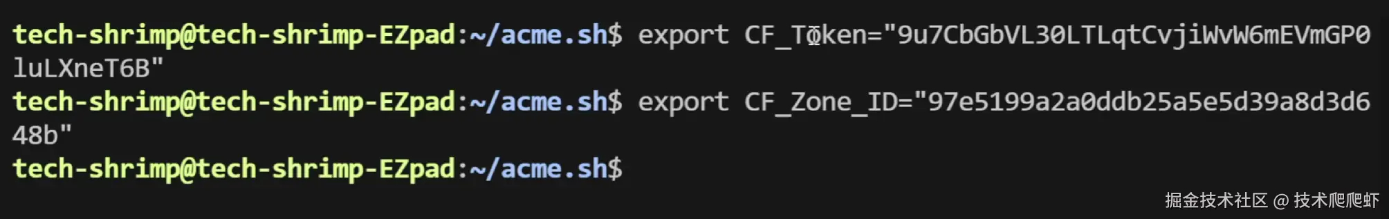 使用命令将两个环境变量配置好,一个是CF_Token,一个是CF_Zone_ID。