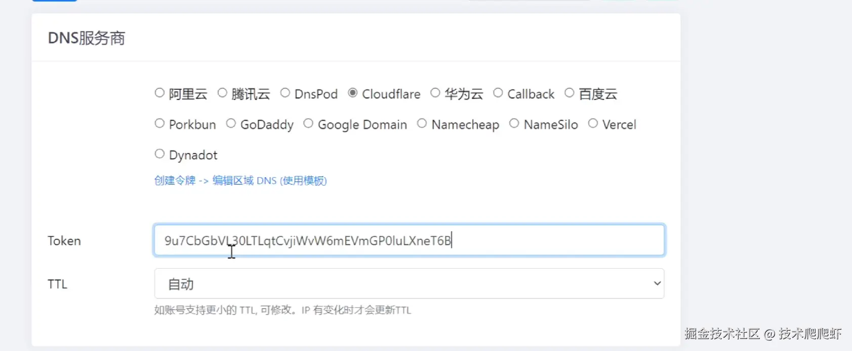 - 接下来是DNS类型,这里DNS是dns_cf,对应cloudflare