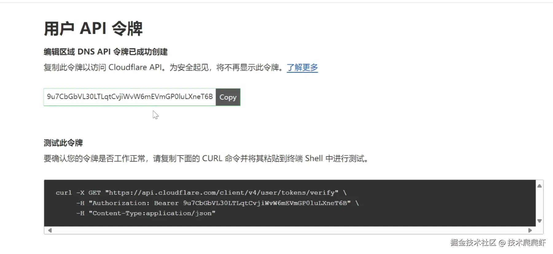 我们先把ddns go配好。进入我域名托管的Cloudflare网站,找到我的个人资料,API令牌-->创建令牌->编辑区域DNS--->使用模板,点击继续以显示摘要,创建令牌。