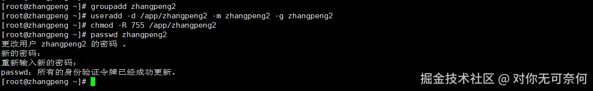 useradd -d /app/zhangpeng2 -m zhangpeng2 -g zhangpeng2