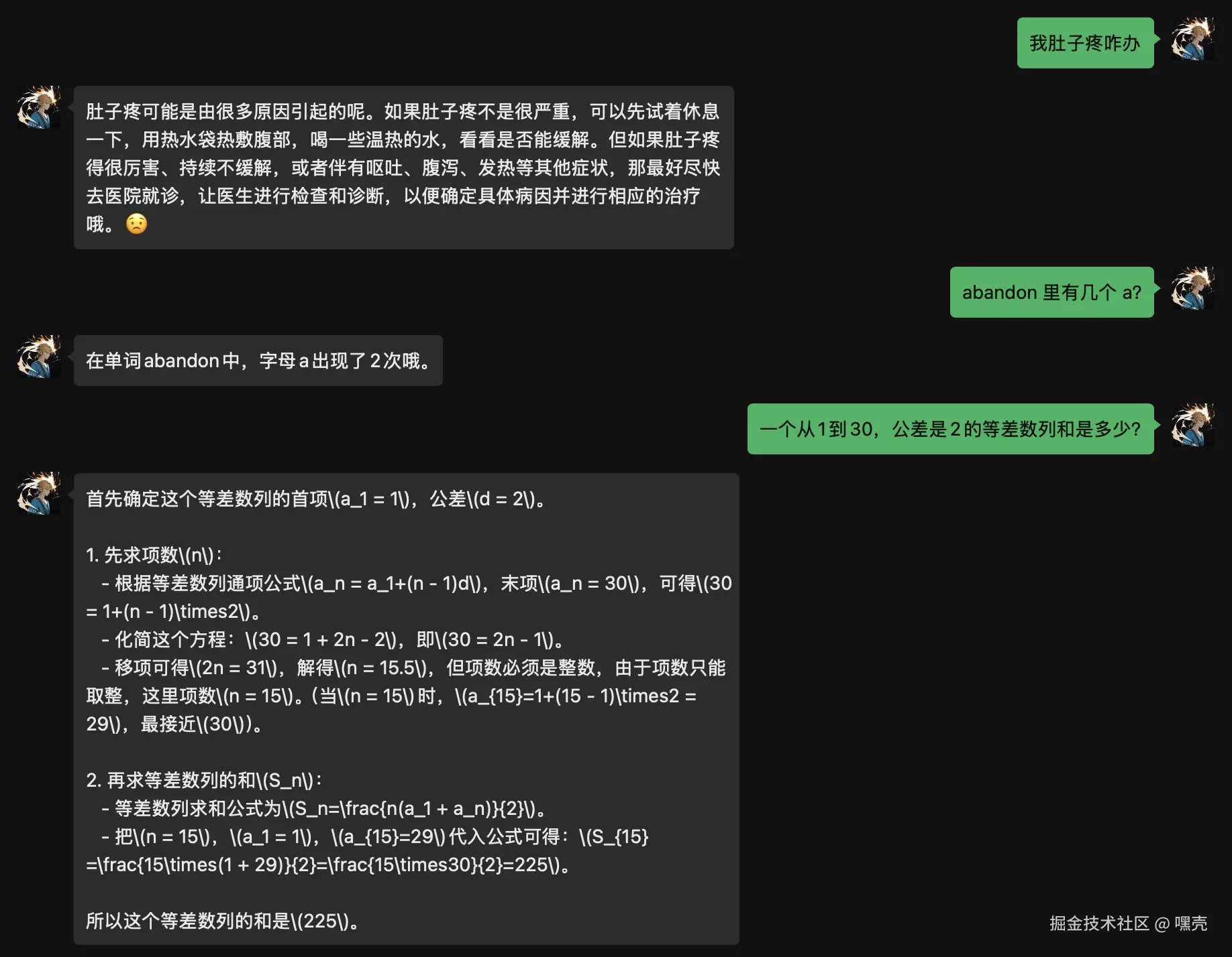 再随便问几个小问题,虽然等差数列没能找出题目的问题,不过整体表现还不错。