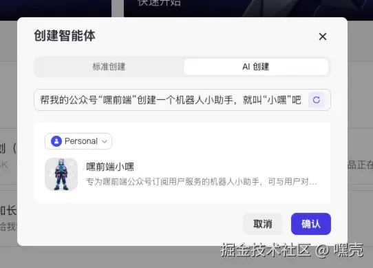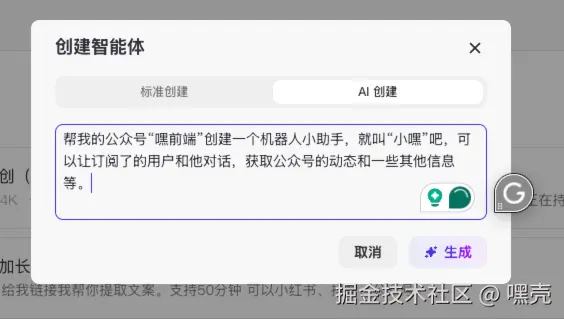 他会自动帮你生成一个智能体配置,还会生成个 AI 头像: