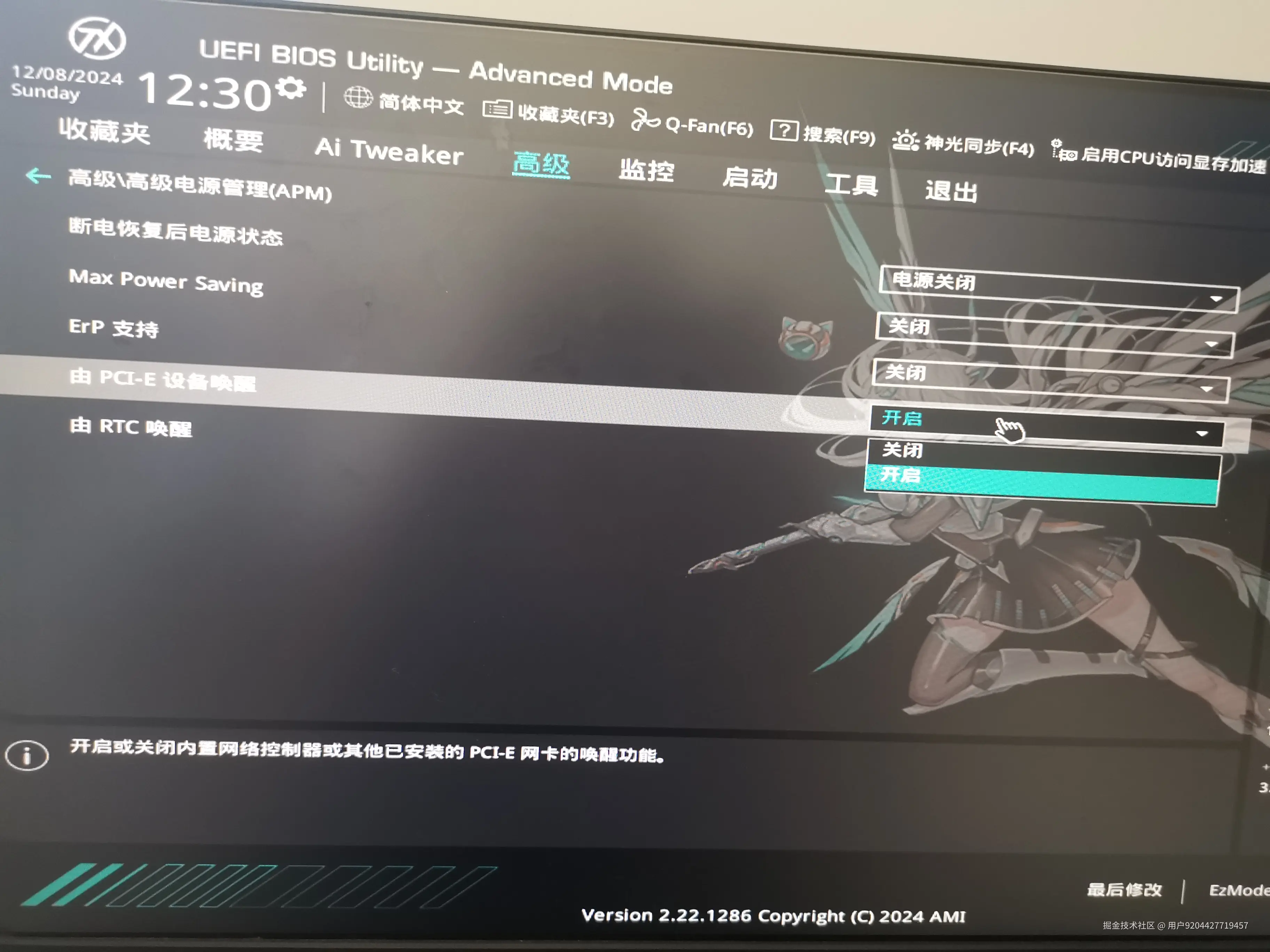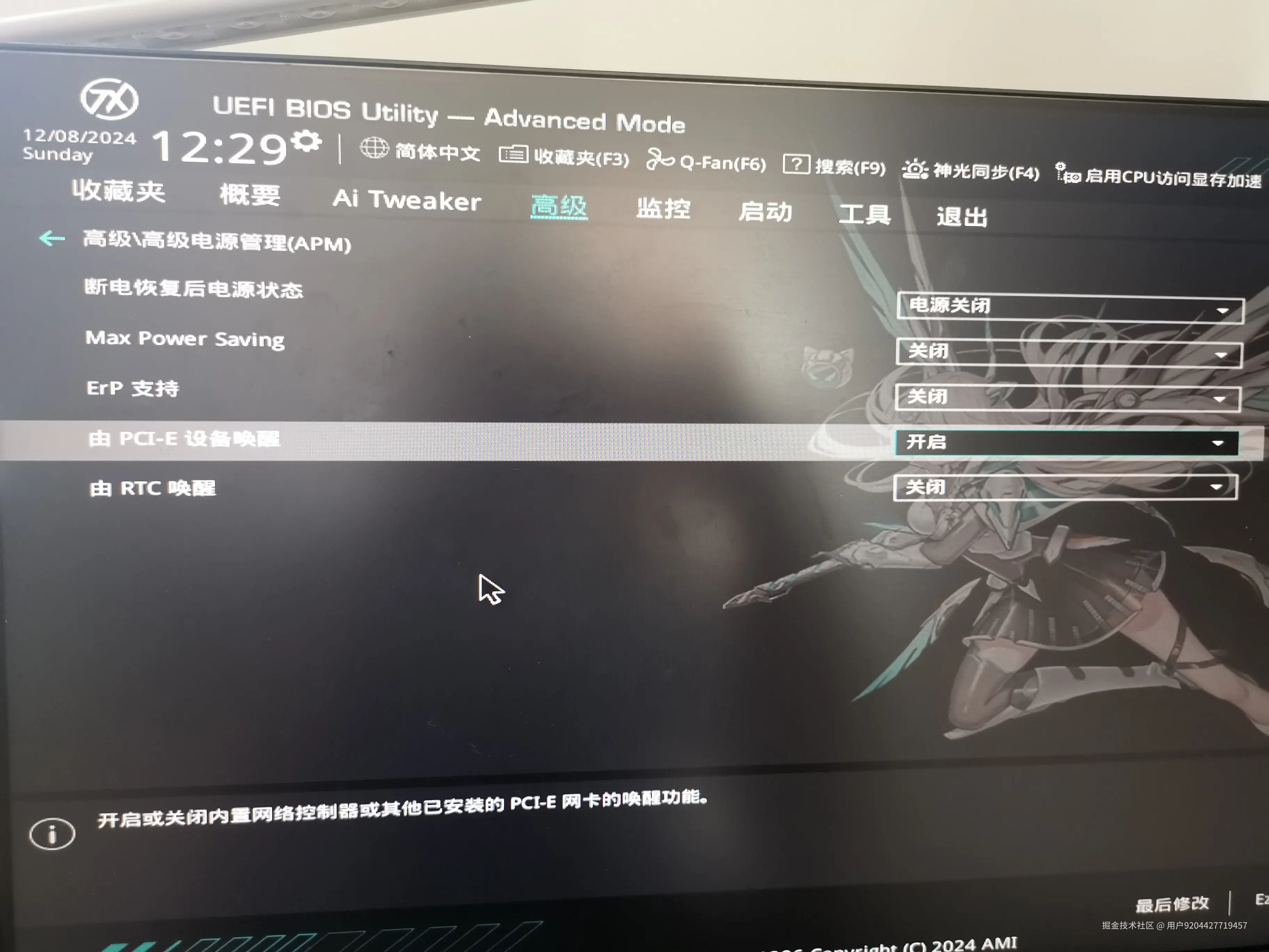 - 开启由PCIE设备唤醒