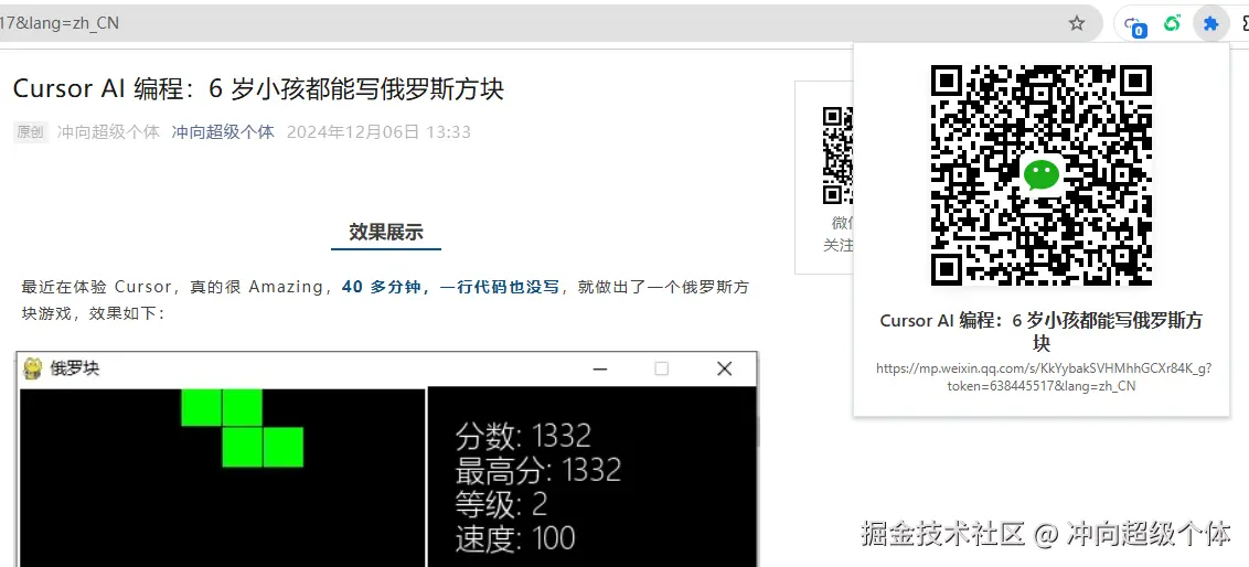 之前的文章《Cursor AI 编程:6 岁小孩都能写俄罗斯方块》就是参加这个活动期间写的。