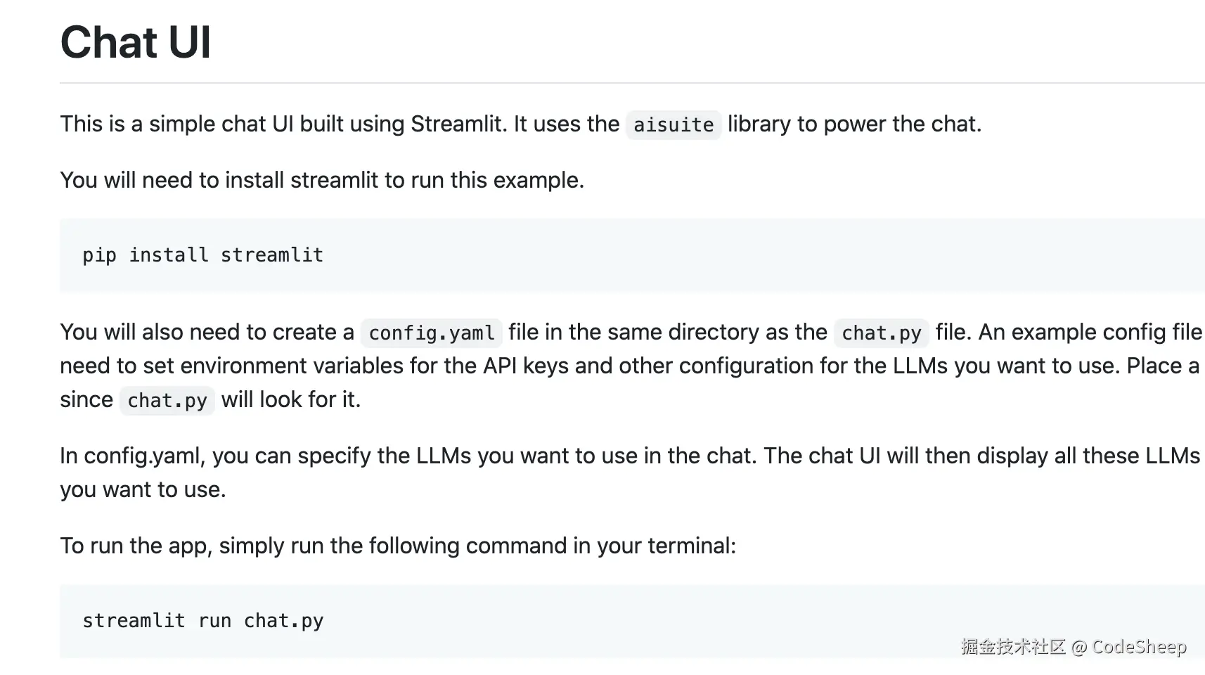 另外从项目给出的 examples 示例里面也可以看到,搭配 Streamlit 等这类业内主流的 Python 应用工具包,还可以基于 aisuite 来搭建一些简单的聊天 UI 界面用于效果测试。