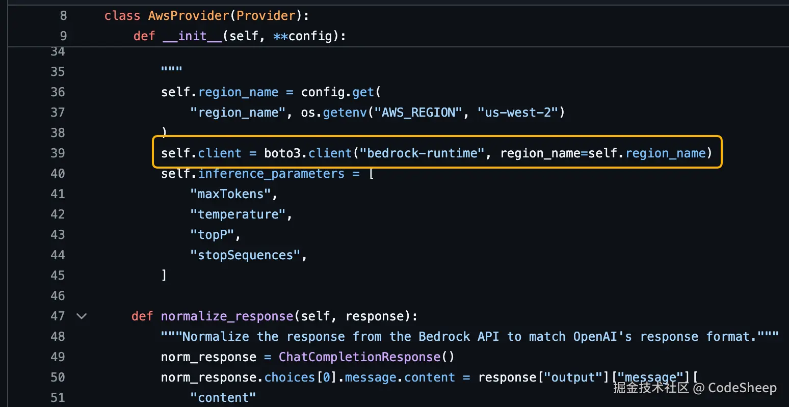 以亚马逊 aws 为例,研究一下对应的aws_provider.py源文件就会发现,其实里面用的也是 Boto3 这种 aws 官方 Python SDK 来实现调用的。