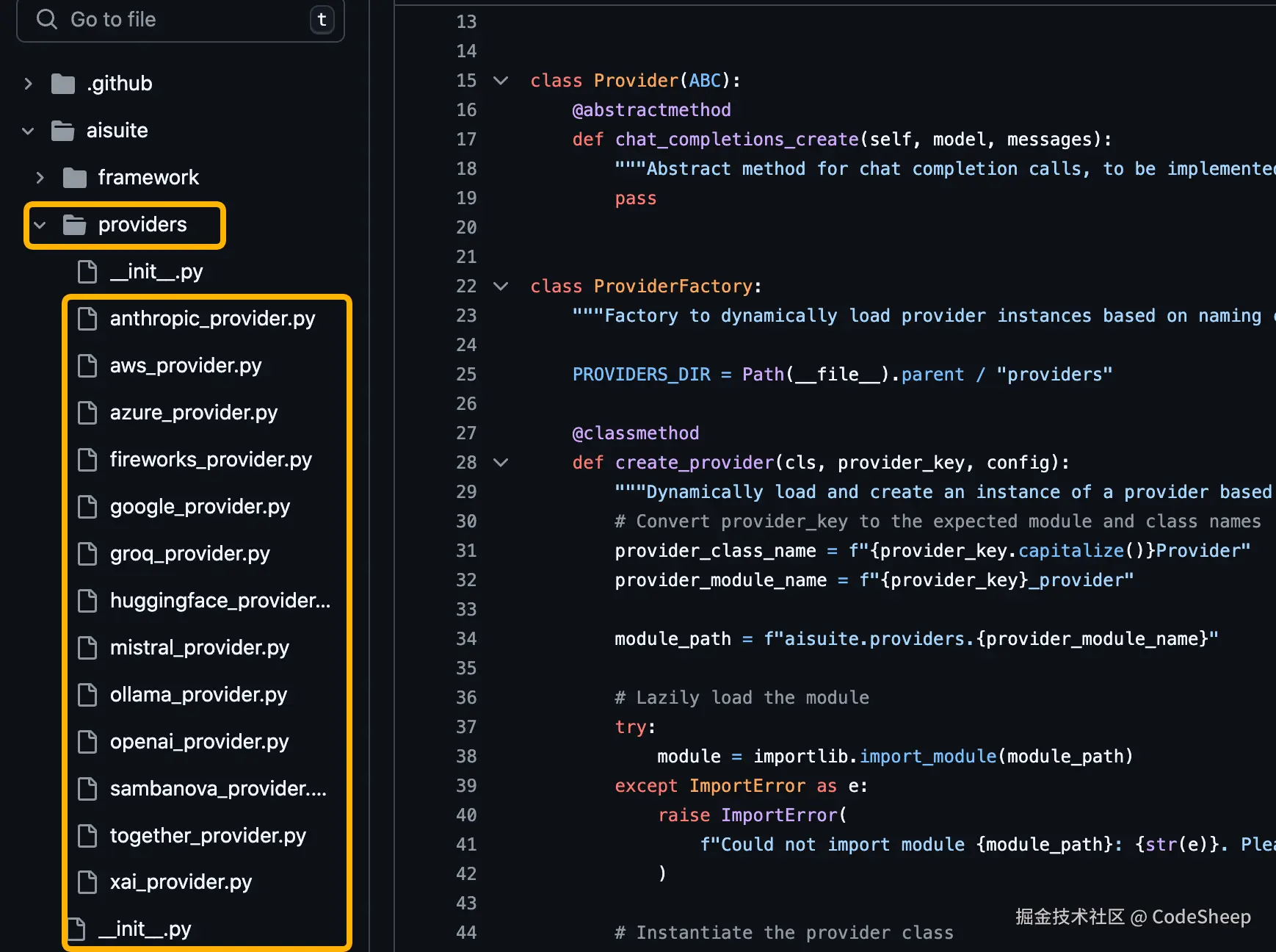 而其核心所支持的多家 AI 大模型平台服务商代码则是通过工厂模式组织于providers文件夹下。