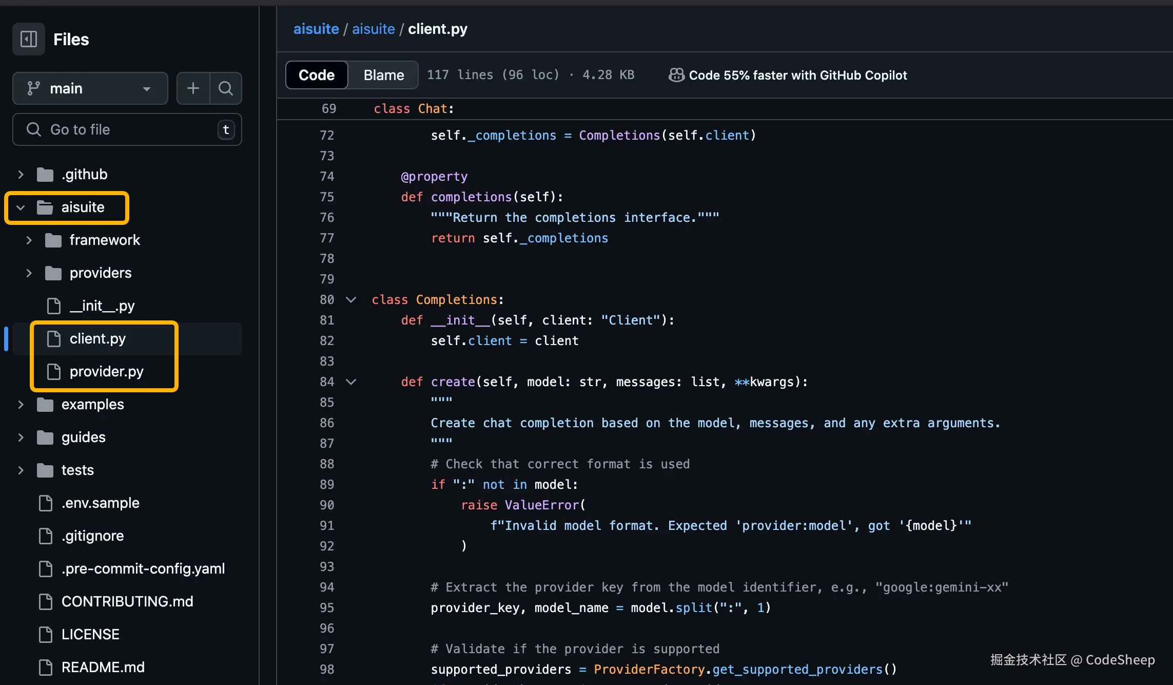 客户端代码主要集中于主目录aisuite下的client.py文件。