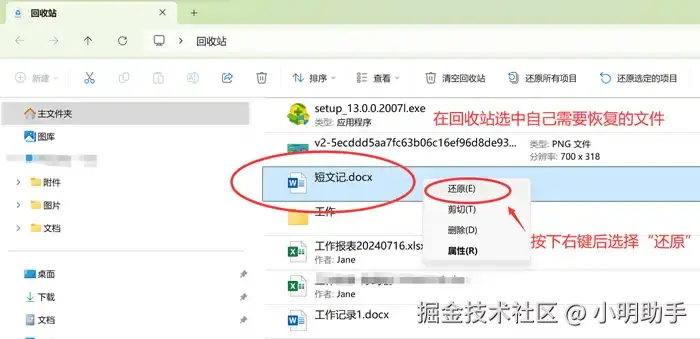 恢复硬盘数据方法一:使用回收站找到删除数据并进行还原