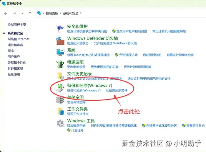 第1步: 启动电脑系统的“控制面板”,在主页面里选择“备份与还原”;