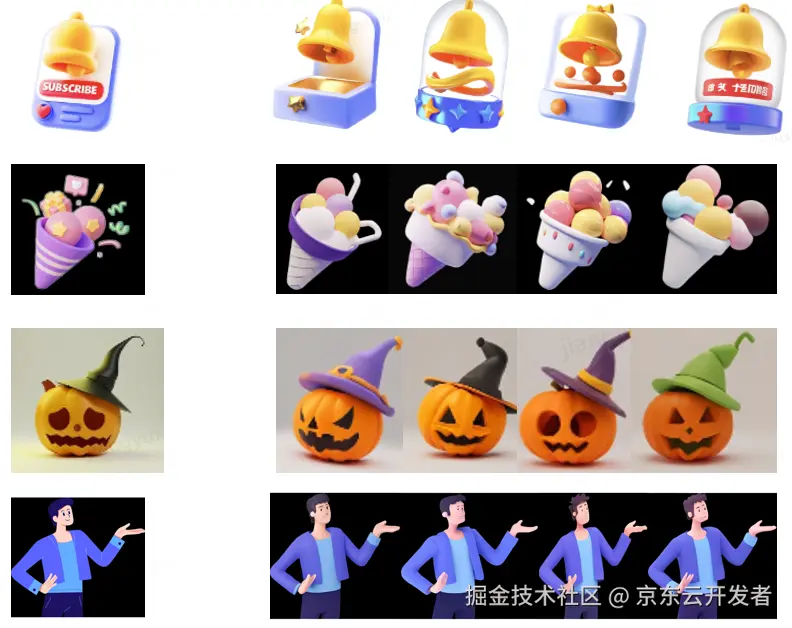本文介绍了在金融场景中组合元素生成的应用以及素材制作的挑战,设计了一个金融组合元素生成的方案,通过三个步骤达到最终生成可控组合元素素材的目的。在第一个步骤中,我们让模型学会了京东风格,认识金融单体素材,在步骤二中,我们通过人工和模型共同迭代的方法,解决了数据稀缺问题,并让模型学习了单体素材直接的组合,最后在步骤三中,我们通过bbox条件控制的方式,让模型学会了通过bbox控制模型位置以及多元素组合的能力,让模型具有可用性,降低使用的门槛,一定程度上帮助设计师完成一部分枯燥繁琐的工作。