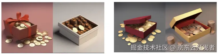 例如:我想让红包小,金币大的组合怎么办?我想要金币在中间的组合怎么写prompt?