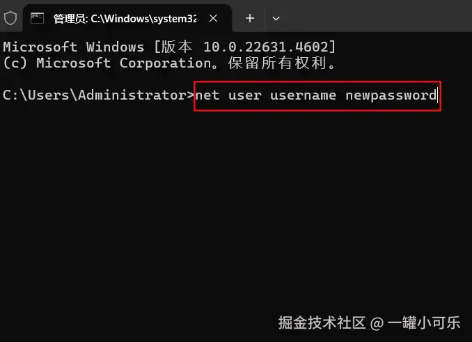 更为快速和便捷的解决Windows密码怎么设置问题的方法是,使用命令提示符快速设置电脑密码,具体的操作步骤是按下【Win+R】进入命令符输入框,输入【cmd】并按下回车键,在弹出来的命令提示符界面中,输入【net user/用户名/新密码】代码即可。