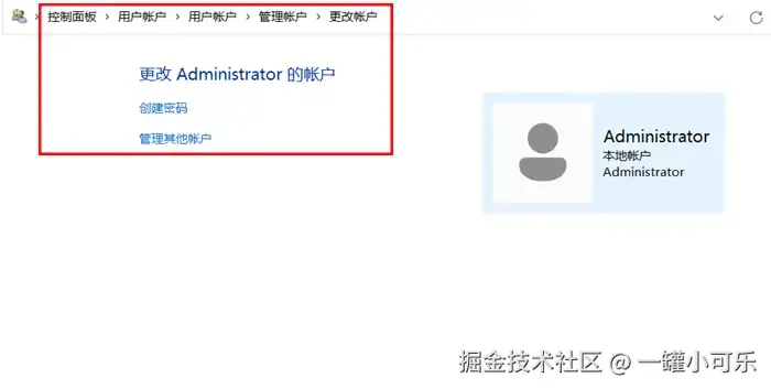 在电脑的控制面板中也提供了解决笔记本在哪里设置密码问题的方法,即在任务栏中搜索【控制面板】并点击进入,然后依次点击【用户账户】-【管理其他账户】-【创建密码】即可设置电脑密码。