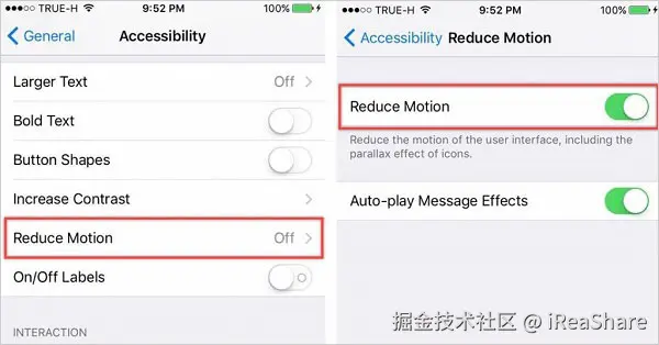 - 向下滚动找到并关闭“减少运动”。