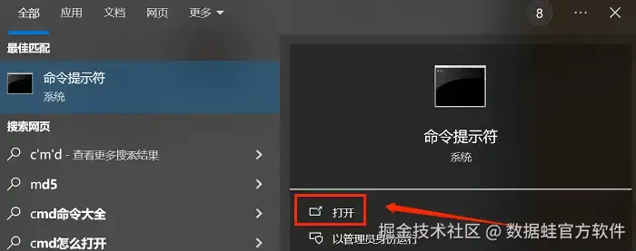 步骤1:在开始菜单的搜索框里输入“cmd”然后回车找到“命令提示符”