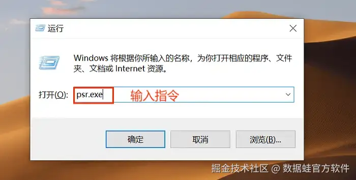 步骤1: 按下 “Win+R” ,输入 “psr.exe” 打开步骤记录器。