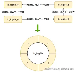 Redo Log采用固定大小并循环写入的方式,类似环形缓冲区。当日志文件写满时,会从头开始覆盖之前的内容。这样的设计是因为Redo Log记录的是数据页的修改,而一旦Buffer Pool中的数据页被刷写到磁盘,之前的Redo Log记录就不再有效。新的日志会覆盖这些过时的记录。此外,硬盘上的Redo Log文件并非单一存在,而是以文件组的形式存储,每个文件的大小都相同。