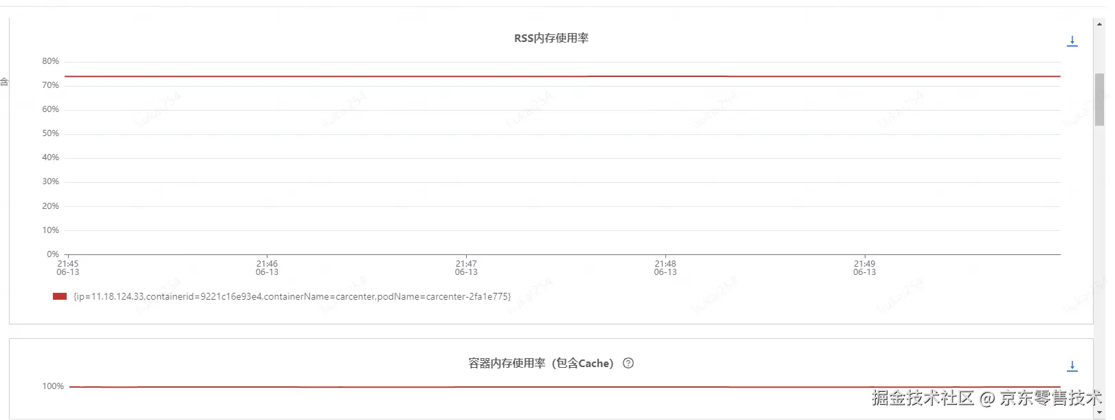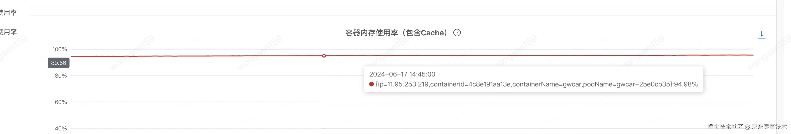 容器内存使用率(包含cache)基本一直保持在99%以上,建议先确定该指标的影响,并降低该指标
