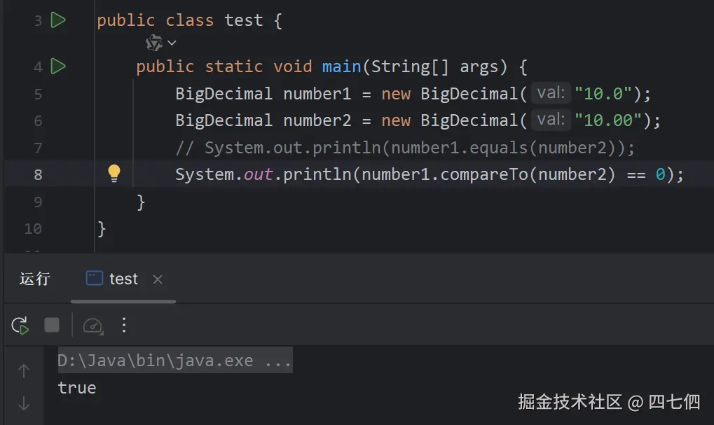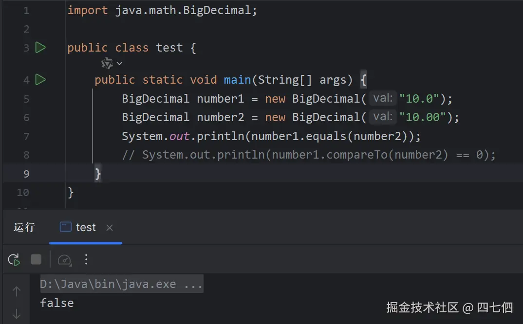BigDecimal.equals()方法对比数值相等时,要怎么样对比BigDecimal类型的数值是否相等?- 可以使用