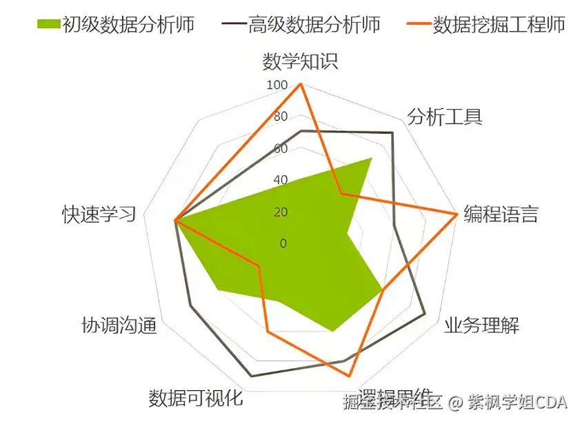 随着各行各业进行数字化转型,数据分析能力已经成了职场的刚需能力,这也是这两年CDA数据分析师大火的原因。和领导提建议再说“我感觉”“我觉得”,自己都觉得心虚,如果说“数据分析发现……”,肯定更有说服力。想在职场精进一步还是要学习数据分析的,统计学、概率论、商业模型、SQL,Python还是要会一些,能让你工作效率提升不少。备考CDA数据分析师的过程就是个自我提升的过程,CDA小程序资料非常丰富,包括题库、考纲等,利用好了自学就能考过。