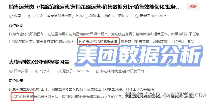数据分析岗对于数据分析思维、业务分析模型的考察十分重视。这两年随着数据化转型,学数据分析的人越来越多,做点调研就会发现CDA数据分析师是含金量最高的,知识体系非常的完整,考过了CDA数据分析师一级,几乎就具备了基本的数据分析能力,考过了二级就具备了进大厂的能力,很多大厂实战问题在备考二级的时候都会学到,想提升数据思维能力和数据分析技能的,可以扫码CDA认证小程序,获取更多资料。