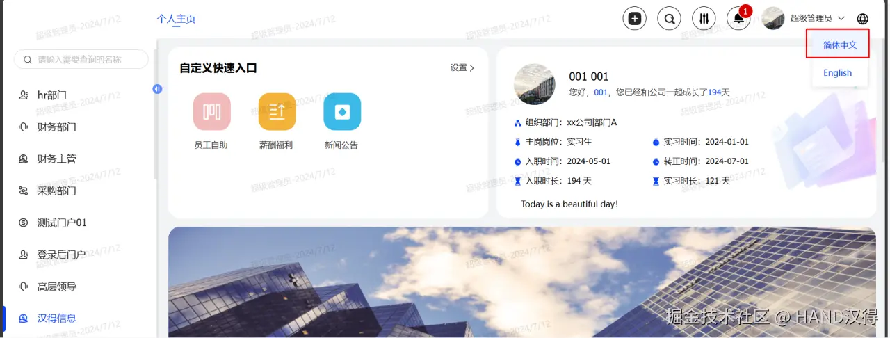 二、登录后门户国际化