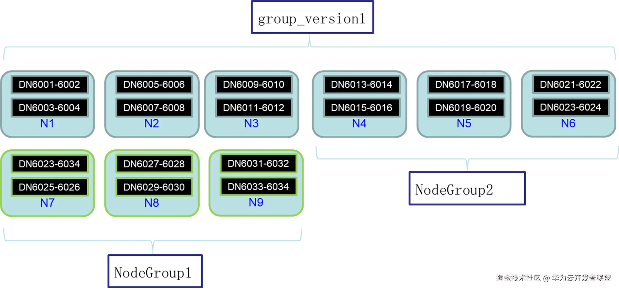 Installation nodegroup:GaussDB安装时自动创建的NodeGroup,包含物理集群内所有DN节点;名称通常是group_version1, group_version2;