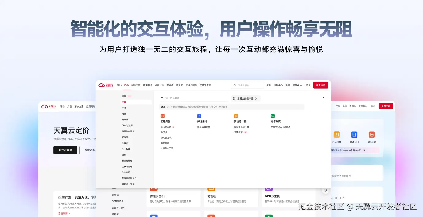 近日,天翼云官网正式升级焕新,通过全新改版和功能优化,为用户打造更加高效的服务体验,助力企业数字化转型升级提速!
